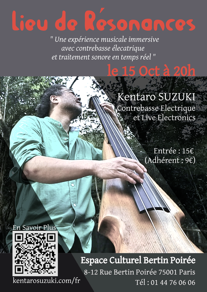The sound of the electric upright bass is layered and transformed live through digital processing, blending sensations of space, time, and tone color.